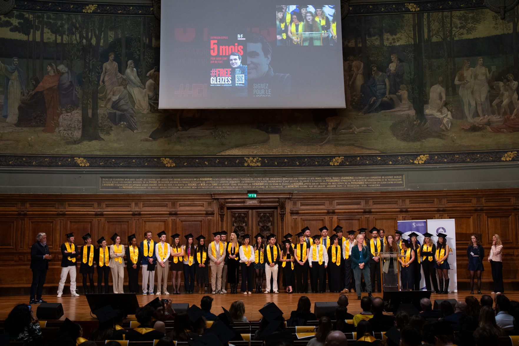 La liberté de penser et de critiquer a été évoquée à plusieurs reprises, et plus particulièrement la liberté de la presse, lorsque Valérie Jeanne-Perrier, directrice de la mention Journalisme du CELSA, a appelé à signer la pétition de soutien à Christophe Gleizes, alumnus 2013, journaliste arbitrairement incarcéré en Algérie et condamné en décembre 2025 à sept ans de prison ferme alors qu’il ne faisait que son travail.