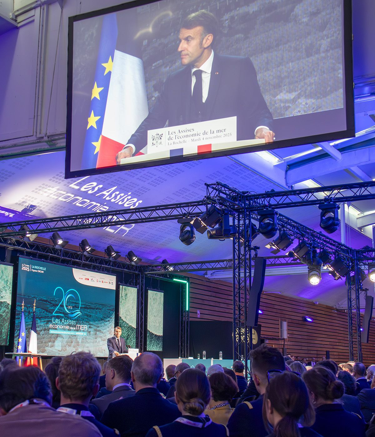 Deuxième jour - les papiers et les reportages sont en cours - merci à Institut de l'Océan et au le marin Les stagiaires du master en formation continue Journalisme et informations scientifiques participent cette année aux Assises de l'économie de la mer, qui se tiennent les 4 et 5 novembre à La Rochelle.Cet événement majeur, ouvert par le président Emmanuel Macron, regroupe tous les professionnels de la mer autour des grands enjeux économiques, environnementaux et technologiques liés à l’avenir de la mer.Encadrés parValérie Jeanne-Perrier, les étudiants vivent « une expérience d'immersion dans une rédaction spécialisée et ouverte aux questions scientifiques ». En collaboration avec la rédaction du marin, magazine du groupeOuest-France, ils couvrent l’ensemble des débats et rencontres de l’événement.Au programme : portraits vidéo, podcasts et articles diffusés sur le site du média partenaire. Une occasion unique pour les étudiants de mettre en pratique leurs compétences journalistiques dans un environnement professionnel exigeant.