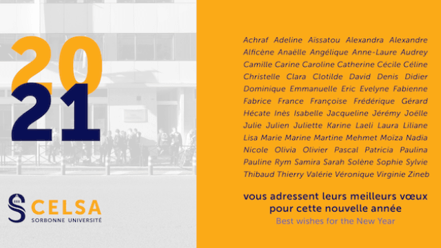 L'équipe de l'Ecole de journalisme du Celsa vous souhaite une belle Année 2021 qu'elle soit gage de réussite et de bonheur.