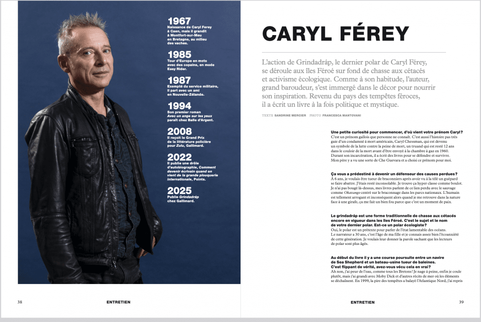Sandrine Mercier, intervenante auprès des Master2 journalisme et nouvelles écritures (en apprentissage) au Celsa, dans son très beau magazine A/R, a passé au grill Caryl Férey (voir ci-dessous). Cet écrivain bourlingueur un brin déjanté, auteur de romans et de polars, a situé son nouvel opus au beau milieu des Iles Féroé qu’il a explorées de long en large pour mieux percer l’état d’esprit de ses insulaires. Il raconte aussi ses multiples périples à la spécialiste des voyages.